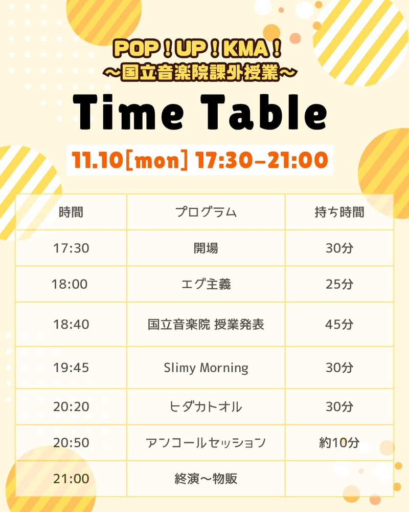 11.10高円寺HIGHでの国立音楽院LIVEタイムテーブル発表