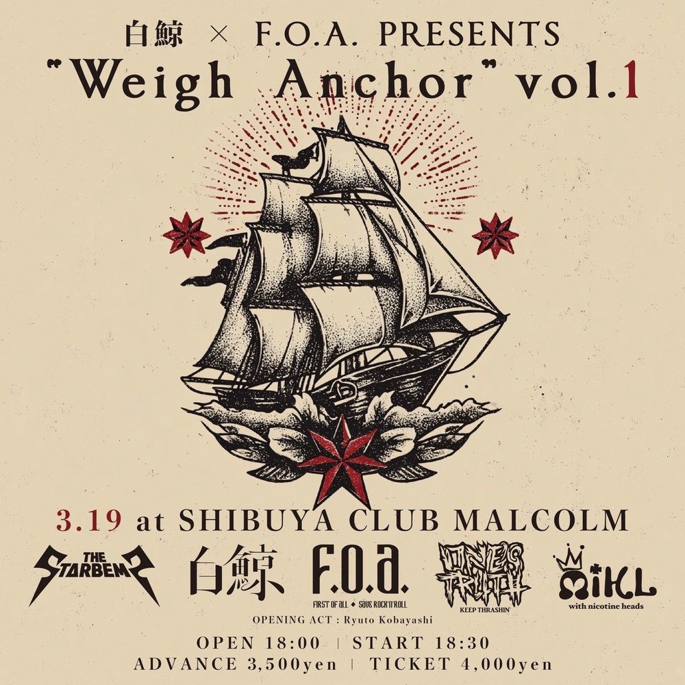 新バンドF.O.A.と白鯨が共催する渋谷クラブ・マルコムでのイベントの、最終メンツが決定しました!